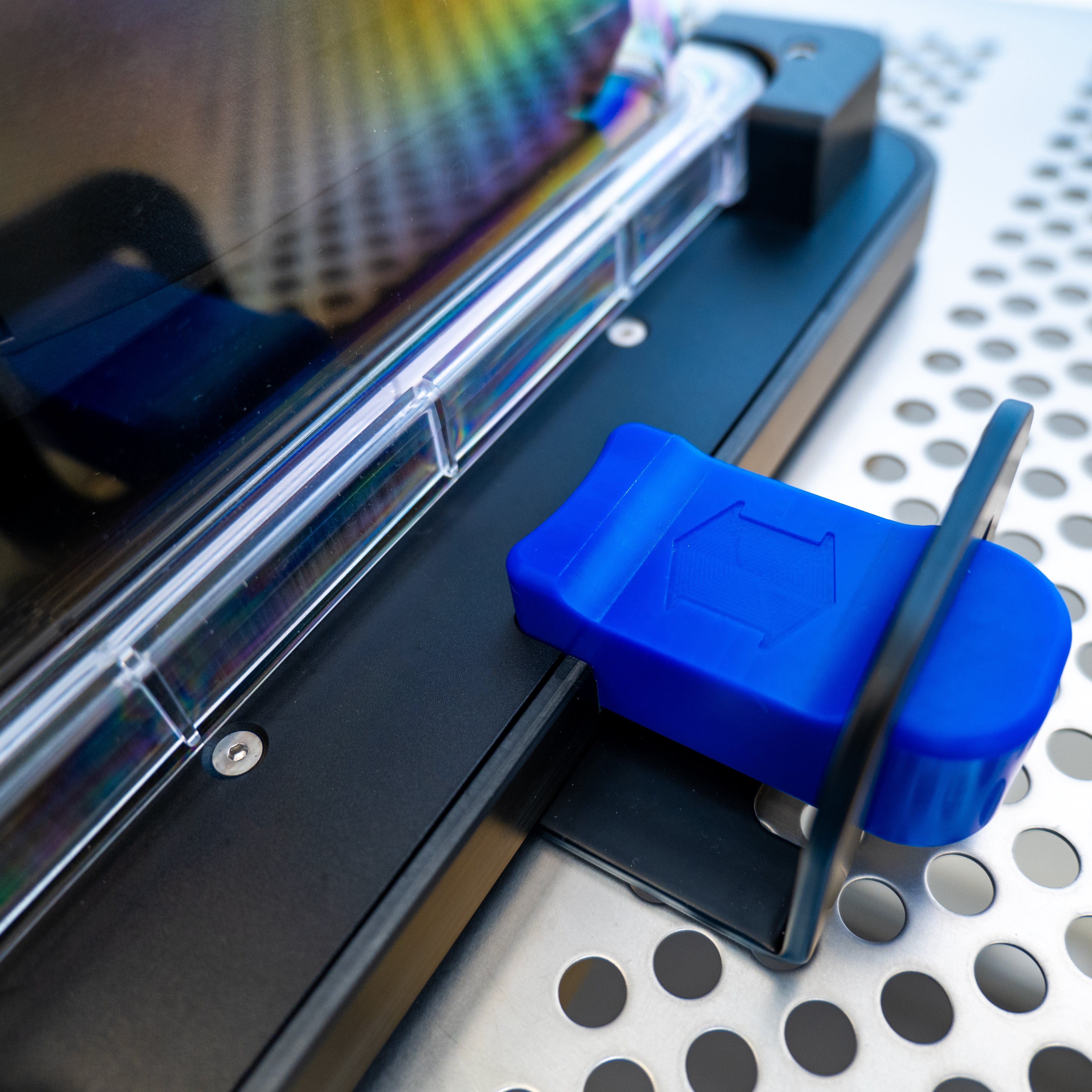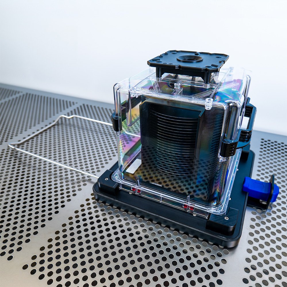 The WHS-O7-SMIF is a precision-engineered manual pod opener specifically designed for the secure opening and closing of SEMI E19.3 and E19.4 SMIF pods used for 200 mm wafers. This compact tabletop device unlocks the pod’s center spring-loaded lock, allowing for effortless operator access. Once the lid is removed, it can be conveniently placed on the built-in stainless steel storage rack, keeping the lid clean and contamination-free during wafer handling operations.