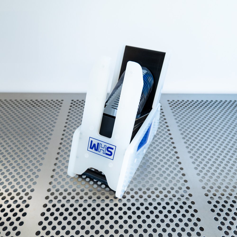 The WHS-P2 100 mm (4") is a precision-engineered, manual wafer escalator designed to assist operators with wafer ID (laser mark) reading and lot integrity checks in semiconductor fabs. Featuring a 25° angled presentation, this tabletop tool allows easy access to individual wafers for manual inspection, ensuring proper tracking and identification before they proceed to the next process stage.